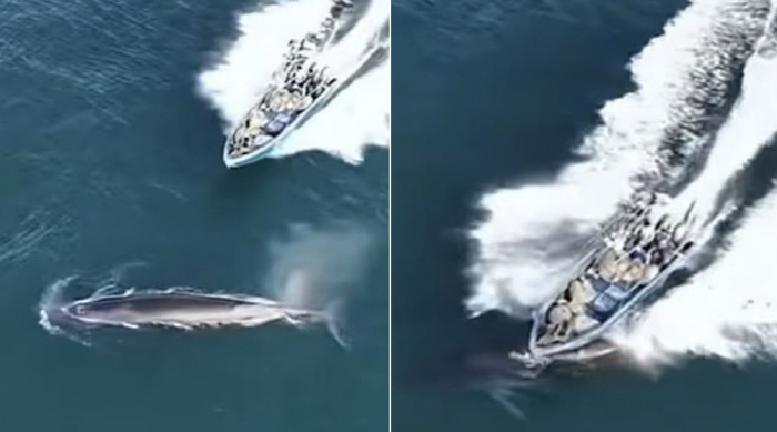 데일리메일 등 외신들에 따르면 중국 남부 광시좡족자치구 웨이저우섬 인근 해역에서 보호종인 브라이드고래가 수면 위로 올라와 숨을 쉬며 물을 뿜는 모습이 담겼고, 인근에는 고래 관람선들이 거리를 두고 있었다. 그런데 한 어선이 속도를 줄이지 않고 그대로 고래의 등 위를 지나가며 충돌이 일어났다.
