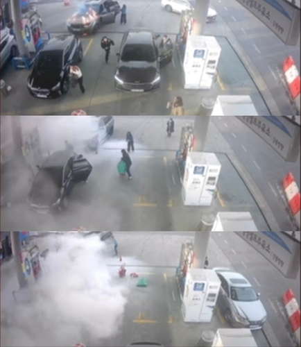 또 차량에 동승자가 남아 있지 않은지 확인한 뒤, 곧바로 주유소 사무실로 달려가 소화기를 챙겨왔다.