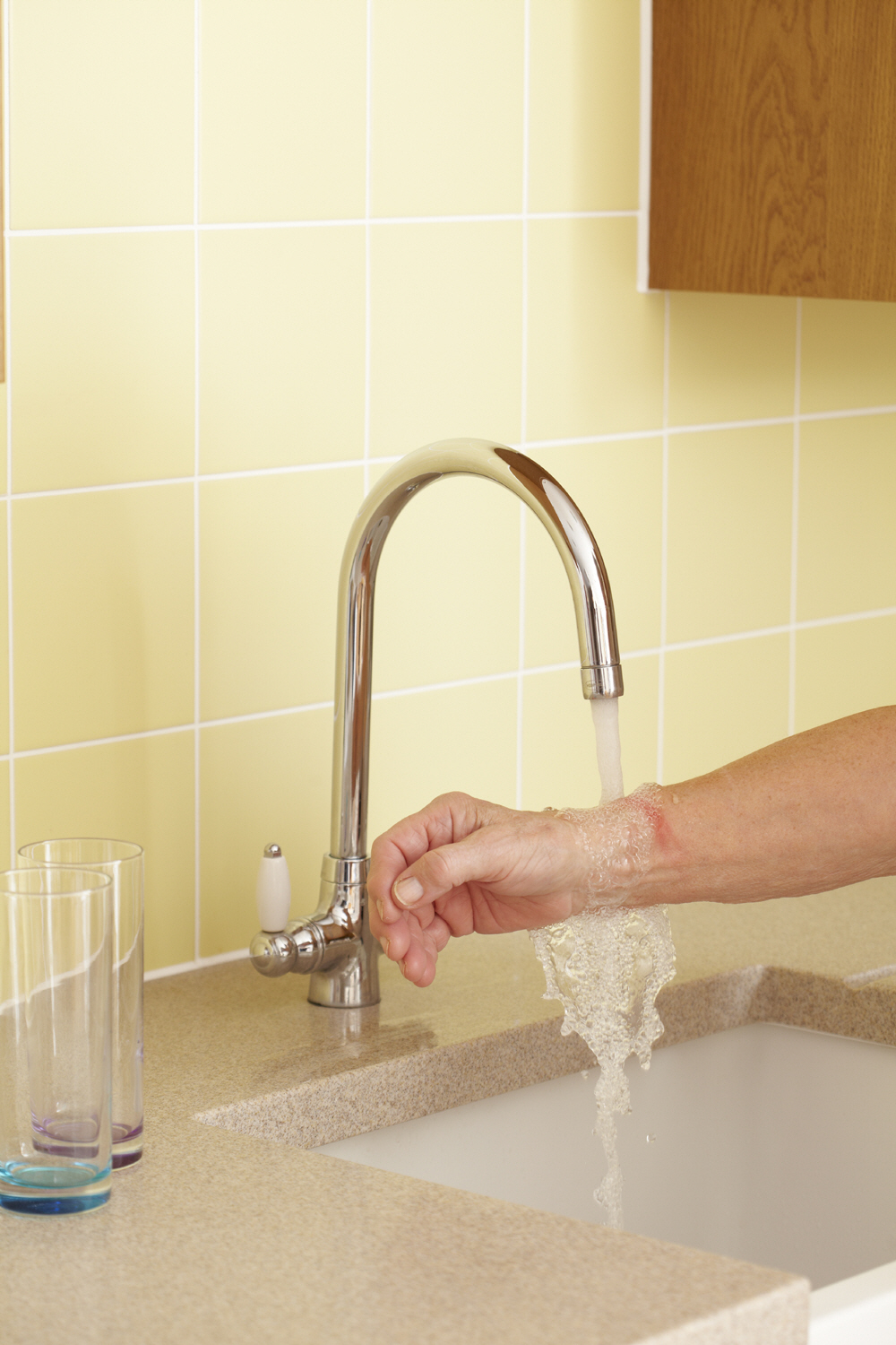 Q. 전을 부치다 손등에 기름이 튀었을 때, 집에서 할 수 있는 올바른 대처법은?
