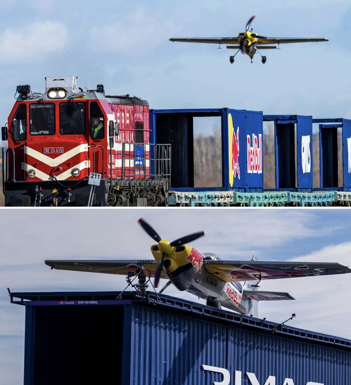 글로벌 음료 회사 레드불에 따르면 15일(현지시각) 이탈리아 출신 파일럿 다리오 코스타(Dario Costa)는 '자브코 엣지 540' 모델 프로펠러 비행기로 시속 120km 속도로 달리는 기차의 마지막 객차 위에 착륙한 뒤 다시 이륙하는 데 성공하며 세계 최초 기록을 세웠다.