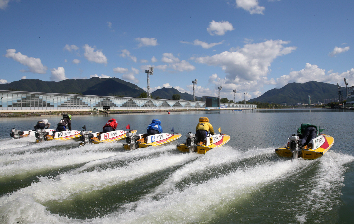 플라잉 스타트 방식은 6척의 모터보트가 전속력으로 달려가며 0초에서 1초 사이에 가상의 출발선을 통과하는 방식이며, 온라인스타트 방식은 계류장에서 선수들이 출발신호와 함께 동시에 박차고 나와 결승선까지 경쟁하는 방식이다.