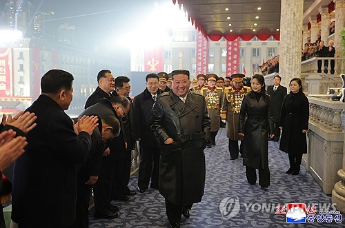 이날 열병식 주석단에는 김 위원장의 딸 주애가 어머니 리설주 여사와 함께 모습을 드러냈다.