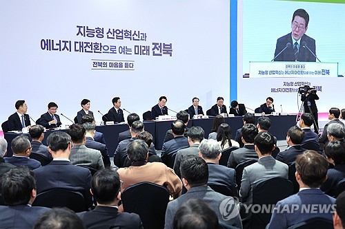 이 대통령은 "전북에 매우 중요한 핵심 미래산업을 유치하게 된 것"이라며 "앞으로는 (새만금 지역을) 인공지능 로봇 생산 기지로 만들겠다"고 약속했다.