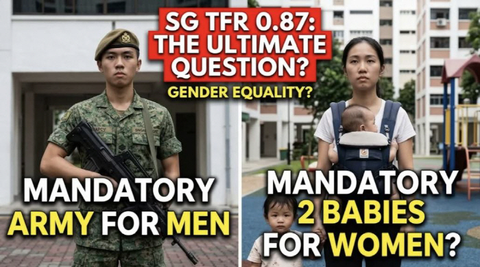[스포츠조선 장종호 기자] 싱가포르에서 남성의 병역 의무에 빗대 여성의 출산 의무를 주장하는 온라인 글이 큰 이슈로 떠올랐다.