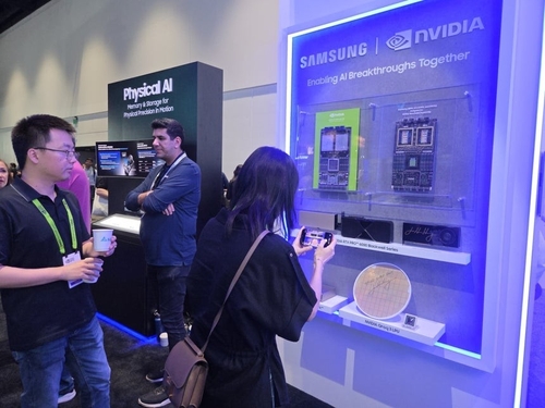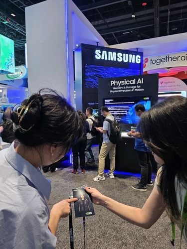 삼성전자가 미국 캘리포니아 새너제이 컨벤션센터에서 진행된 엔비디아의 연례 개발자회의 'GTC 2026'에 마련한 전시장은 행사 개막 사흘째인 18일(현지시간)에도 이색 AI 체험을 하기 위한 관객의 발길이 끊이지 않았다.