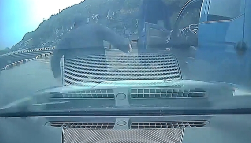 경찰은 "파란색 화물차량이 중앙선을 넘는 등 이상한 운전을 한다. 음주운전 같다"는 112 신고받고 출동했다.