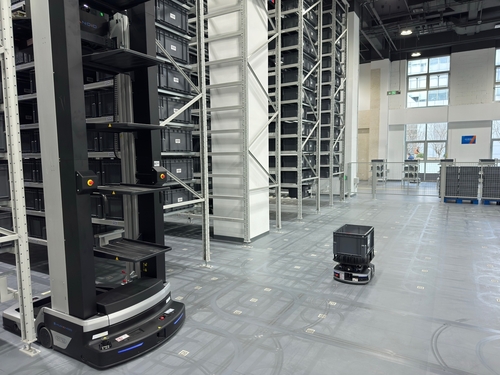 이날 취재진을 가장 먼저 맞이한 1층 창고에서는 바퀴 달린 로봇들이 사람 도움을 거의 받지 않은 채 이리저리 움직이며 선반에 쌓인 부품을 찾아 올리고 있었다.