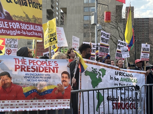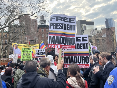 반면 마두로의 처벌을 원한다는 남성은 "베네수엘라의 자유를 원하는 국민들을 대신해 여기 왔다"며 반대 측과 설전을 벌이기도 했다.