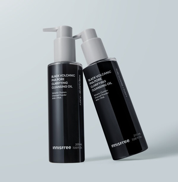 이니스프리가 이달 선보인 '블랙 화산송이 파하 모공 클렌징 오일'은 숯 파우더를 함유한 블랙 컬러 오일 제형이다. 모공보다 작은 유화 입자가 모공 구석까지 밀착해 블랙헤드를 관리하는 구조로, 화장품은 물론 미세먼지, 노폐물을 제거하는 데 도움을 준다. 제주 화산송이와 숯 파우더를 함께 적용해 피지 흡착과 피부 정화 기능을 강화하고, 각질 관리 성분도 포함했다. 물과 닿으면 빠르게 유화되는데, 세안 후 잔여감 없이 마무리된다는 설명이다.