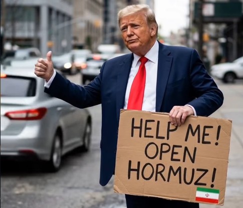 이란 이슬람혁명수비대(IRGC)는 지난달 23일(현지시간) 도널드 트럼프 미국 대통령 사진을 미사일에 붙이는 동영상을 공개했다. 사진 속 트럼프 대통령은 '호르무즈 열게 도와줘'라고 적은 팻말을 들고 도롯가에 서 있다. 동맹국들에 호르무즈 해협 군사작전 지원을 요청했다가 거절당한 트럼프 대통령에 대한 조롱이다.
