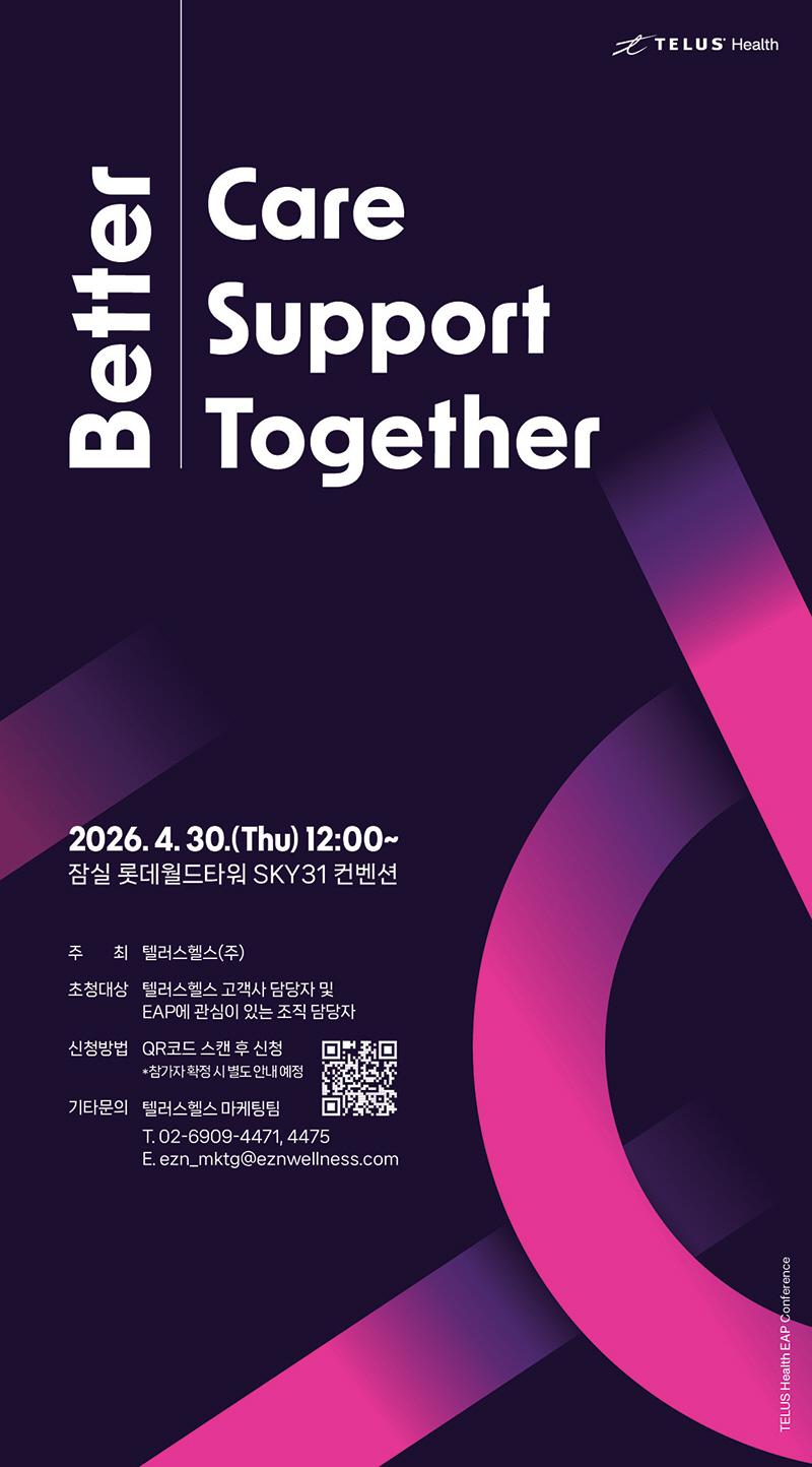 'Better Care, Better Support, Better Together'라는 세 가지 핵심 축을 중심으로 진행되는 이번 행사는 보다 정교하고 심층적인 케어와 고도화된 지원 체계, 그리고 글로벌 기업 'TELUS Health'와의 통합을 통한 시너지 창출을 바탕으로, 차세대 EAP의 방향성과 핵심 비전을 제시하는데 초점을 맞췄다.