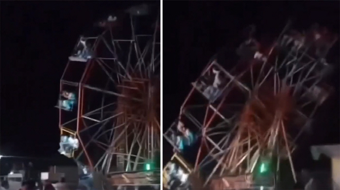 온라인에 게시된 영상에는 관람차 지지대가 무너지면서 거대한 구조물이 그대로 쓰러지는 모습이 담겼다. 현장에 있던 시민들은 비명을 지르며 대피했고, 일부 탑승객은 구조물이 깔린 채 갇히는 아찔한 상황이 벌어졌다.