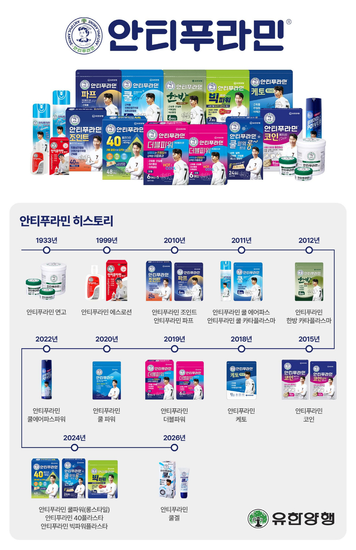 안티푸라민은 1926년 고(故) 유일한 박사가 유한양행 설립 이후, 소아과를 운영하던 유 박사의 부인 호미리 여사의 제안과 조력을 통해 탄생했다. 제품 초기에는 제형 등 원료 자원의 제약이 있었지만, 회사는 꾸준한 연구와 기술적 개선을 통해 제품 효능과 사용 편의성을 지속적으로 향상시켜 왔다.