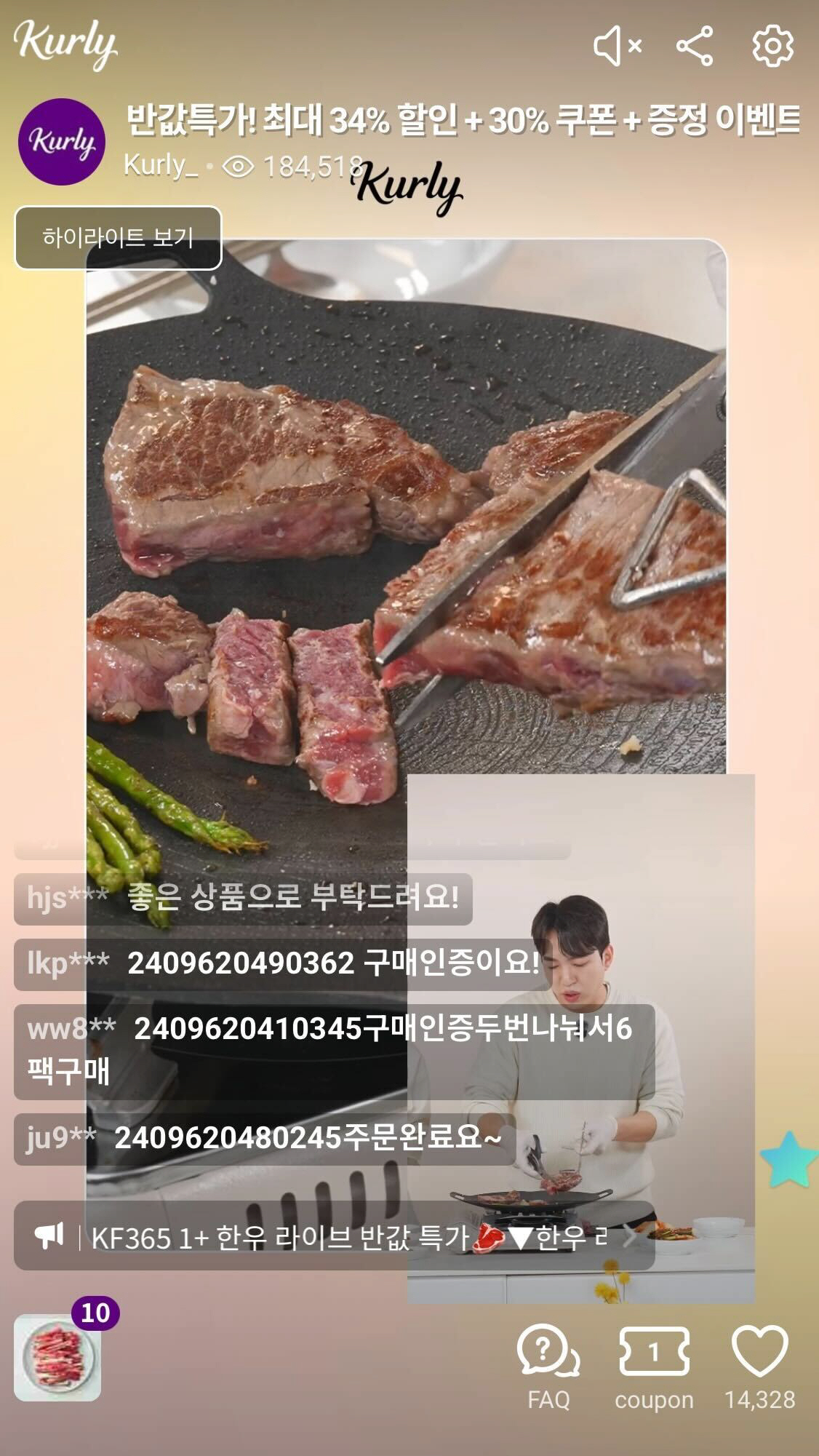 지난 1월과 2월에 방송한 '거대곰탕'과 '오봉집'은 분당 주문 건수가 각각 420개와 200개를 기록했다. 한우, 한돈, 사과, 딸기 등에 대한 관심도 높았다. 지난 3월 방송된 컬리 자체 브랜드 'KF365 한우'는 시청자 수 대비 구매전환율이 7%에 달했고 사과·딸기·한돈은 각각 5%이상 구매전환율을 보였다.