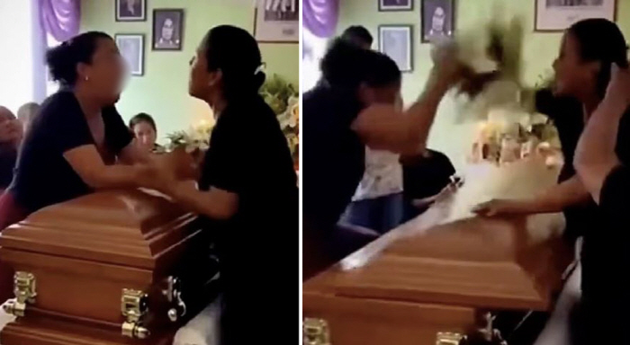 격한 몸싸움 과정에서 관 뚜껑이 거의 밀려 떨어질 뻔하는 아찔한 상황도 연출됐다. 주변에 있던 조문객들이 싸움을 말리면서 상황은 가까스로 정리됐다.