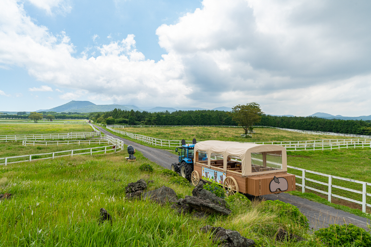 제주목장 트랙터 마차 투어는 대형 트랙터가 끄는 전용 마차를 타고 목장의 넓은 초지와 아름다운 경관을 감상하는 이색 체험 프로그램이다. 매년 봄부터 가을까지 제주를 찾는 관광객과 제주도민들이 일반인의 출입이 제한된 목장 내부를 구석구석 둘러보며 특별한 경험을 할 수 있는 기회를 제공해왔다.