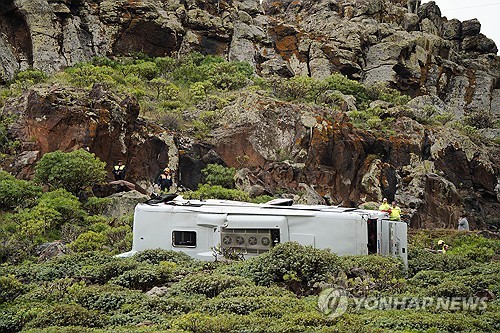 10일(현지시간) 스페인 카나리아 제도에서 관광객을 태운 버스가 협곡으로 추락해 1명이 숨지고 27명이 다쳤다고 AP 통신이 전했다.