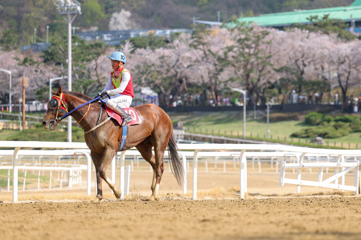 지난 12일, 한국마사회(회장 우희종) 렛츠런파크 서울에서는 쏟아지는 벚꽃 비 속 제34회 'SBS스포츠 스프린트(G3, 1200m)'가 개최됐다. 이날 경주에서는 '빈체로카발로'와 조재로 기수가 우승 트로피를 들어 올리며 단거리 최강자의 면모를 다시 한 번 입증했다.