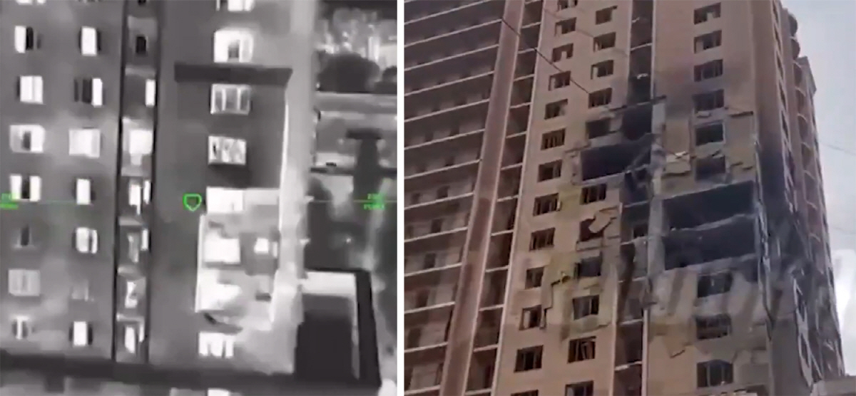 공개된 영상에는 최신형 1인칭 시점(FPV) 드론 여러 대가 고층 건물을 향해 돌진해 폭발하는 장면이 담겼다.