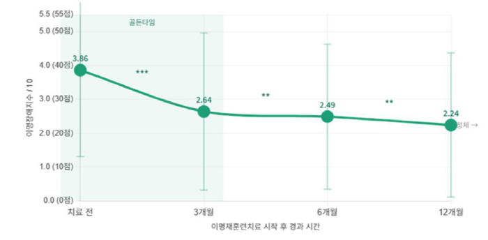 분석 결과, 치료 효과는 시작 후 첫 1년에 집중되는 것으로 나타났다. 특히 치료 3개월 사이에 귀울림의 불편함과 생활 방해 정도가 가장 크게 줄었고, 12개월까지 유의미하게 호전되었고 1년이 지난 뒤에는 개선이 둔화되는 경향이 확인됐다. 임상 현장에서 치료 첫 1년을 집중 관리하는 것이 무엇보다 중요하다는 근거가 마련된 셈이다.