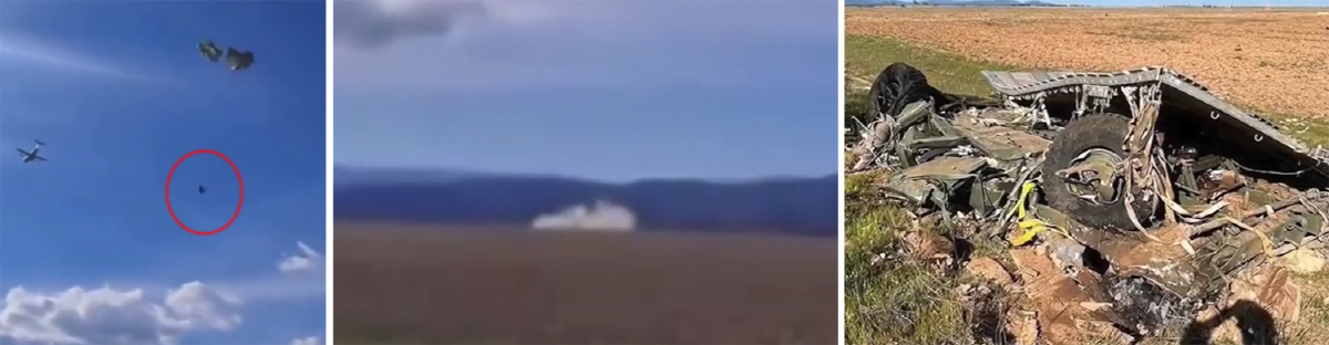 그런데 낙하산에서 분리된 전술 차량이 그대로 땅으로 추락했고, 형체를 알아보기 어려울 정도로 완전히 파손됐다.