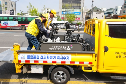 이에 구는 보행안전을 위해 직접 전기자전거를 수거하는 조치가 필요하다고 판단해 지난 1일부터 계도와 홍보를 거쳐 이날부터 직접 수거에 나선다.