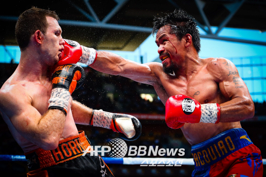 | 파퀴아오(오른쪽)이 2일(한국시각)호주에서 열린 제프 혼과의 WBO 웰터급 타이틀 매치에서 판정패했다. ⓒAFPBBNews = News1 |