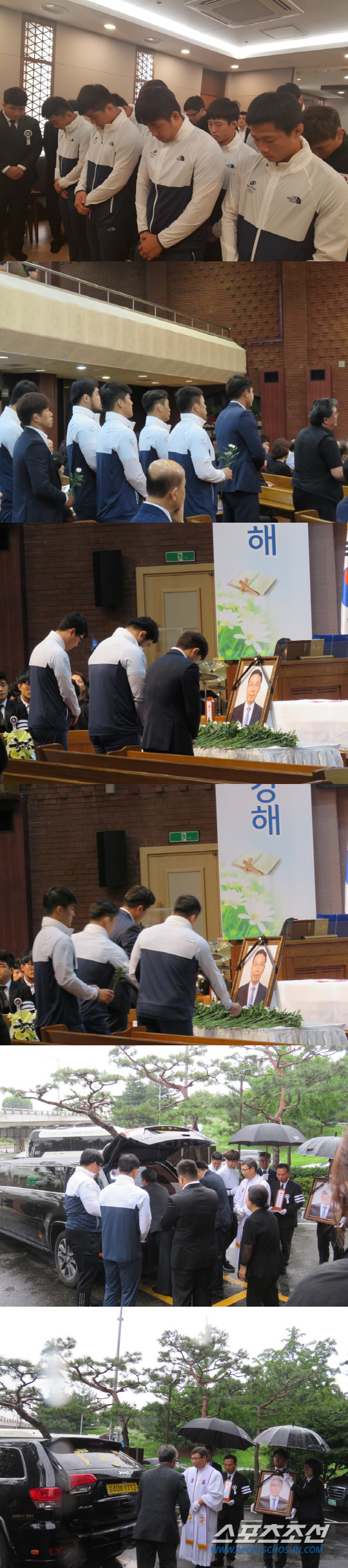 30분 가까이 헌화 행렬이 끊이지 않았다. 쏟아지는 빗속에 운구 행렬이 시작됐다. 체육인의 자부심으로 국민에게 받은 사랑을 되갚기 위해 마지막 순간까지 헌신한 '레슬링 영웅' '뽀뽀뽀 아저씨'가 우리 곁을 떠났다.