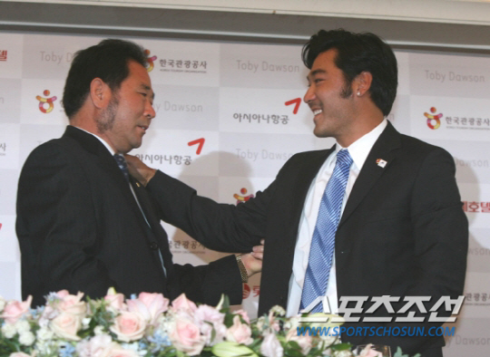 2007년 친부 김재수 씨(왼쪽)와 극적으로 상봉한 토비 도슨 감독. 스포츠조선DB