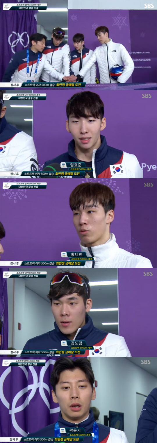 막내 황대헌은 "계주에 대한 첫 단추가 잘 꿰지지 않았나 생각한다. 곽윤기 형이 잘 이끌어준 것 같다"고 화답했다.
