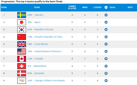한국은 17일까지 3승(1패)을 쌓았다. 세계적인 강호 캐나다(세계랭킹 1위)와 스위스(2위) 그리고 종주국 영국(4위)까지 잡았다.