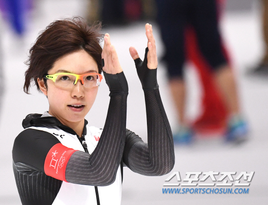14일 오후 강원도 강릉 올림픽파크 스피드스케이팅 경기장에서 스피드스케이팅 여자 1,000m 경기가 열렸다. 경기를 마치고 손을 들어 인사를 하고 있는 고다이라.