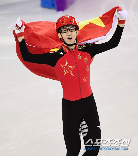평창동계올림픽 남자 쇼트트랙 500미터 결승 경기가 22일 오후 강릉 아이스아레나에서 열렸다. 중국 우다징이 1위를 한국 황대헌, 임효준이 2위와 3위를 했다. 우다징이 기뻐하고 있다. 강릉=정재근 기자 cjg@sportschosun.com/2018.02.22/