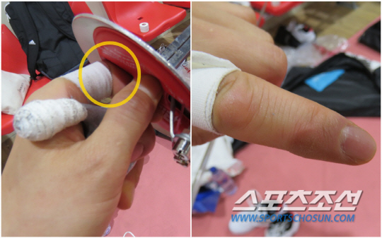 손도 작고, 손가락도 가느다란 탓에 펜싱 검 손잡이도 기존 제품들은 맞질 않는다. 엄지와 검지로 감싼 검이 빠지지 않게, 둘째 손가락으로 힘껏 지지하다 보니 왼손 검지엔 지문이 사라졌다. 대신 두터운 굳은살이 배겼다. 2002년 부산 대회부터 2018년 자카르타-팔렘방 대회까지 지난 16년간 5번째 아시안게임에 나서는 '백전노장' 남현희, 2000년 베이징올림픽 은메달 때를 제외하고 단 한번도 마음에 드는 장비를 갖추고 피스트에 오른 적이 없다. 헐렁거리는 신발, 헐렁거리는 검을 자신만의 방식으로 수시로 개조해가며 한국 여자 펜싱의 역사를 써왔다.