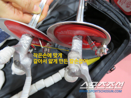 가까이서 지켜본 남현희는 펜싱을 정말 사랑하는 선수다. 자나깨나 오로지 펜싱 생각뿐이다. 그 포인트에서 내가 왜 졌을까를 몇 번이나 복기한다. 다시 붙었을 때 어떻게 하면 이길 수 있을까 치밀하게 연구한다. 불리한 신체조건에도 20년 가까이 세계 정상을 놓치지 않은 건 펜싱을 대하는 집요하고 치열한 자세 덕분이다. 장비에 있어서도 하릴없는 불평보다는 스스로 골똘히 연구해 길을 찾아낸다. "손가락이 닿는 부분은 예전부터 줄로 갈았었어요. 끝부분은 새끼손가락이 닿을 수 있게 테이프도 두껍게 감았고요. 아시아선수권에 가기 전에 문득 손가락이 닿는 부분 말고 손잡이 몸통 부분을 좀 갈면 손에 더 착 감길 것같다는 생각이 들었어요." 생각이 꽂히면 바로 실행에 옮기는 스타일이다. 몇 시간이고 방에 틀어박혀 줄로 펜싱검 손잡이를 갈고 또 갈았다. 잡는 부분이 얇아지자, 그립이 한결 편해졌다. 무릎 수술 한달도 안돼 출전한 6월 태국아시아선수권에서 남현희는 스스로도 놀랄 만큼 가볍게 뛰었다. 개인전 동메달, 단체전 금메달을 목에 걸었다. '칼을 간 효과'를 제대로 봤다. "펜싱 검이 손에 감기면서 경기할 때 손이 한결 편해졌다"며 미소 지었다.