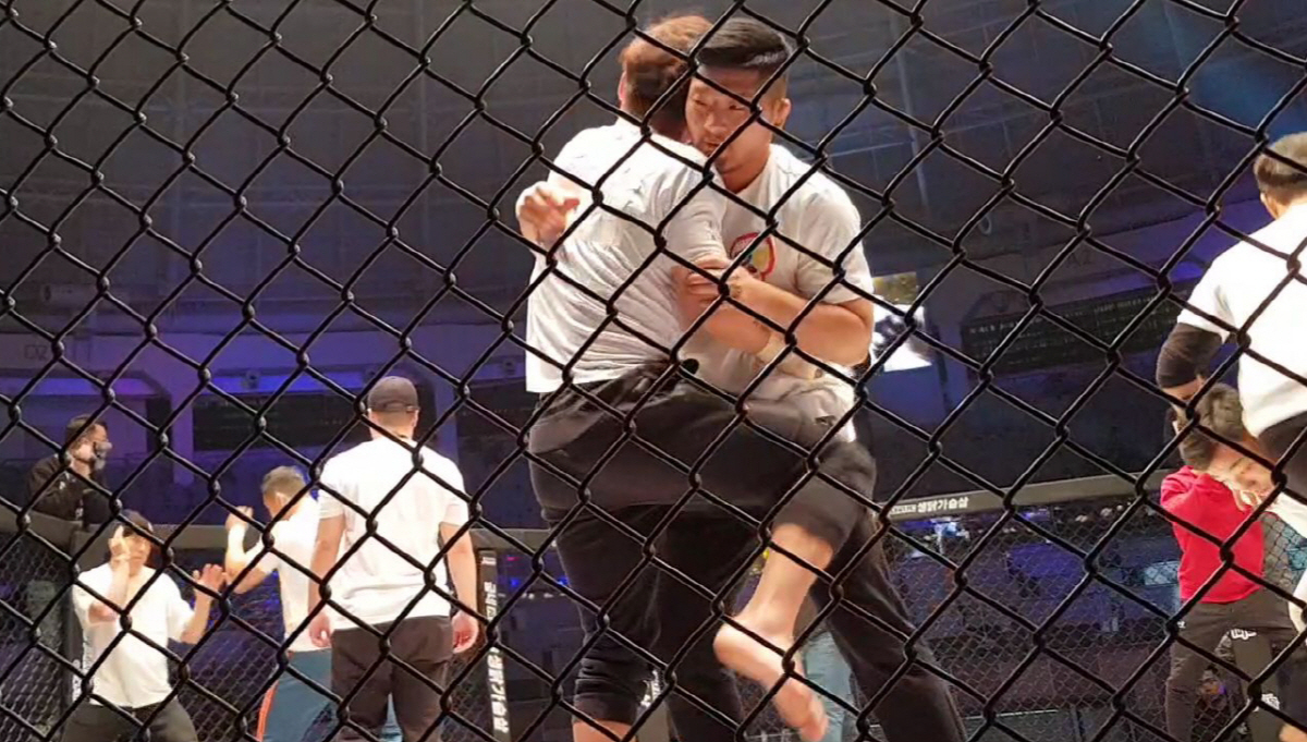 샤밀 자브로프와 만수르 바르나위의 로드FC 100만불 토너먼트 결승전이 열리는 23일 장충체육관. 경기를 앞두고 선수들의 케이지 체크 시간이 있었다. 선수들이 경기전 케이지에 올라 그라운드의 상태와 케이지 철조망 등의 상태를 점검할 수 있는 시간이다.