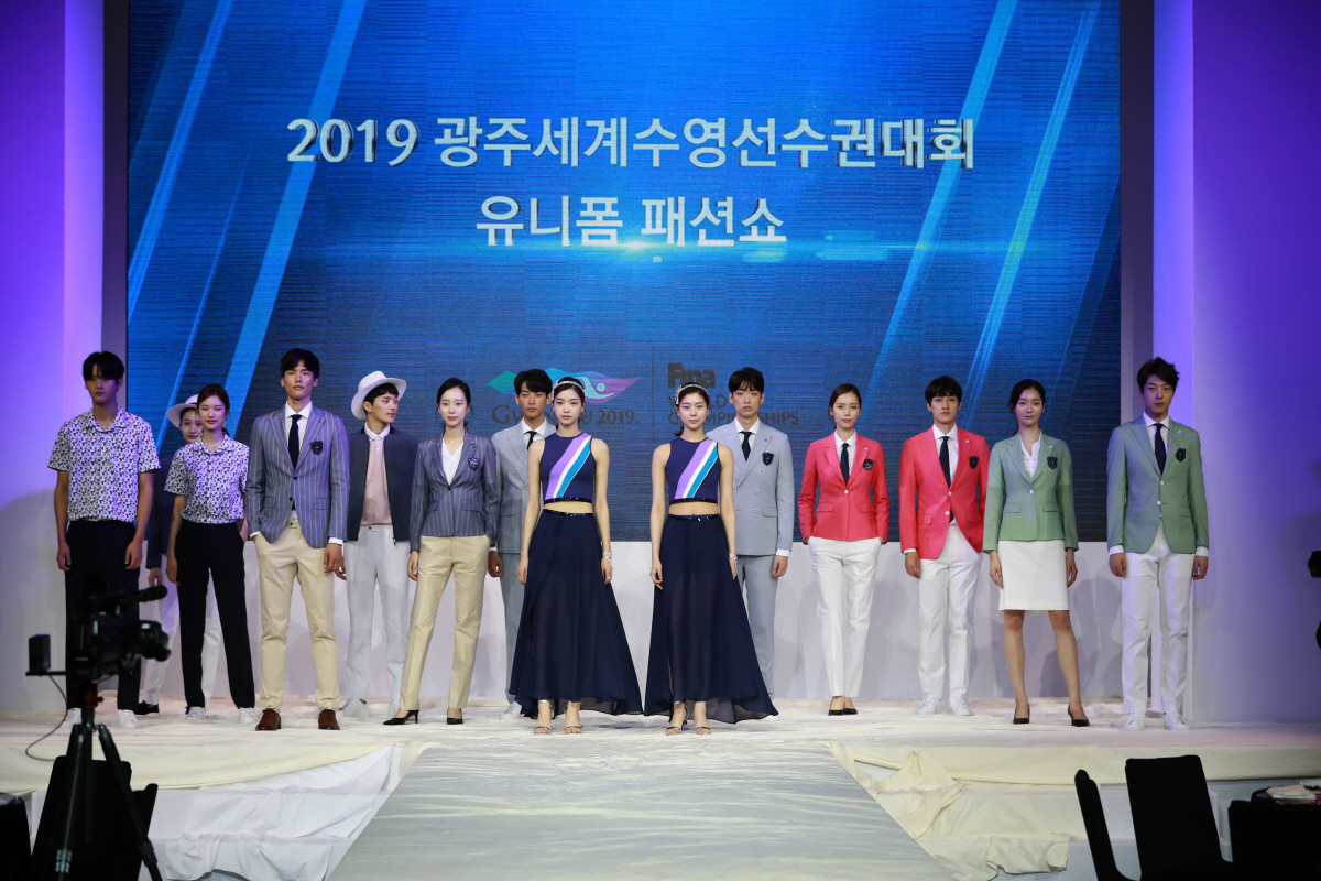 2019 광주세계수영선수권 대회의 공식 유니폼이 화려한 패션쇼를 통해 첫 선을 보였다.