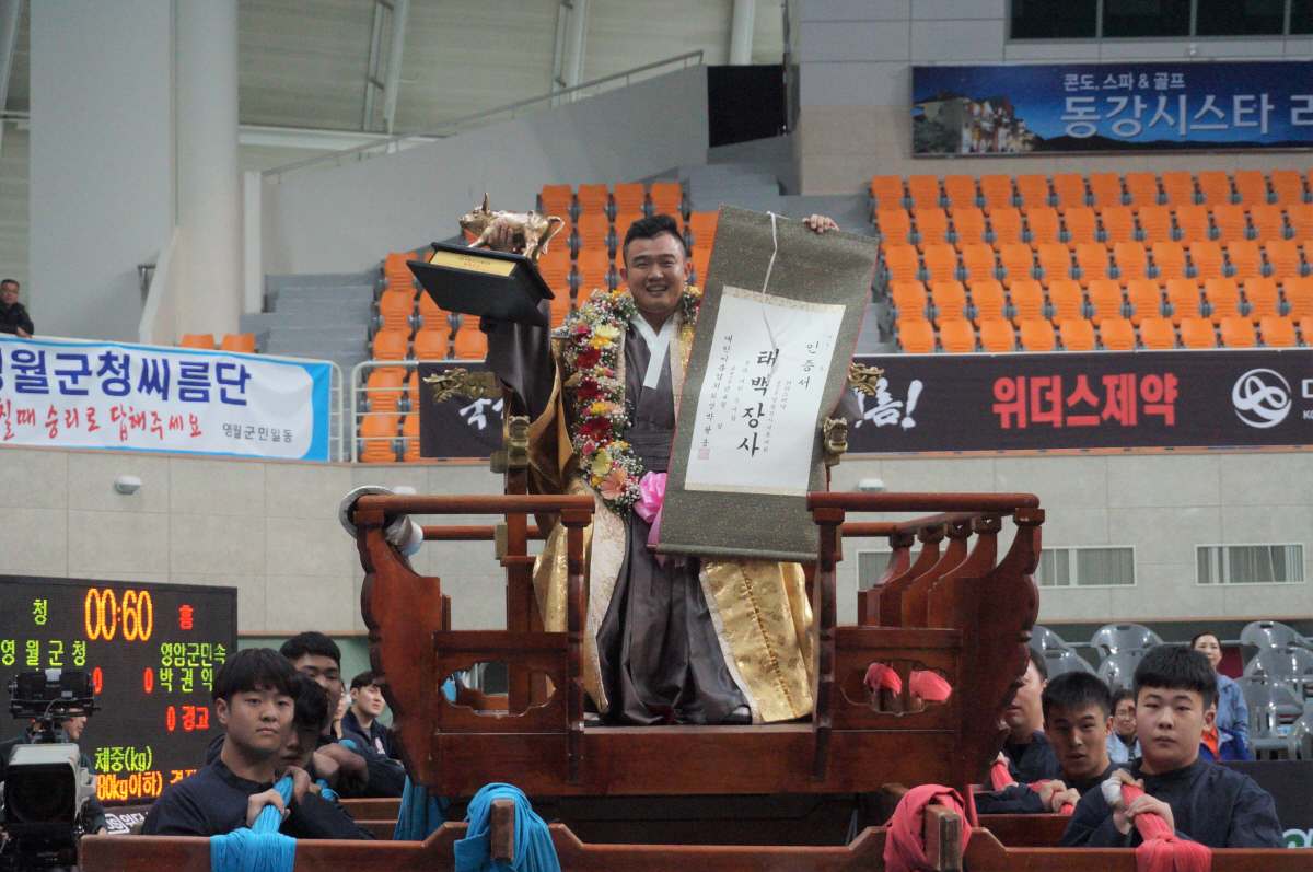 이준호(영월군청)가 위더스제약 2019년 영월장사 씨름대회에서 태백장사에 올랐다.