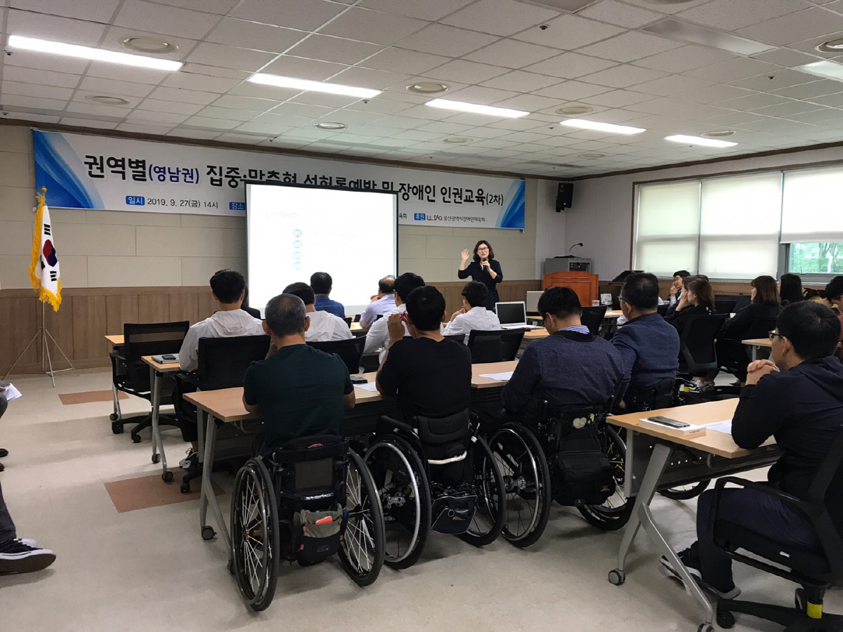 올해 초 비장애인 빙상 종목 코치의 성폭력 의혹 사건 후 '체육계 미투'가 이어지는 가운데 대한장애인체육회는 재발 방지를 위한 적극적인 교육에 집중하고 있다. 지난해 4월 선수권익보호를 위한 개설한 체육인지원센터를 통해 성희롱 예방 활동과 교육에 나섰다. 장애인조정국가대표팀 내 성추행 사건이 피의자의 성인지 감수성 부족에 기인한다는 점에 주목해 전국 장애인체육 종사자들을 대상으로 권역별 집중 교육을 이어가고 있다. 체육인지원센터는 지난 5월 광주에서 호남 지역 장애인체육 종사자 대상 교육을 실시한 데 이어 27일에는 울산에서 영남지역 장애인체육 지도자와 현장 근무자들을 대상으로 성희롱 예방은 물론 인권 감수성을 키울 수 있는 전문교육을 실시했다. 향후 충청과 강원권에서도 권역별 교육을 이어갈 예정이다.