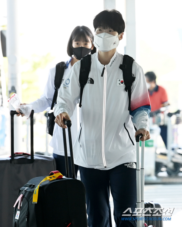 도쿄올림픽에 출전하는 태권도 대표팀 선수단이 21일 인천공항을 통해 출국했다. 이다빈이 출국장으로 들어서고 있다. 인천공항=허상욱 기자 wook@sportschosun.com/2021.07.21/