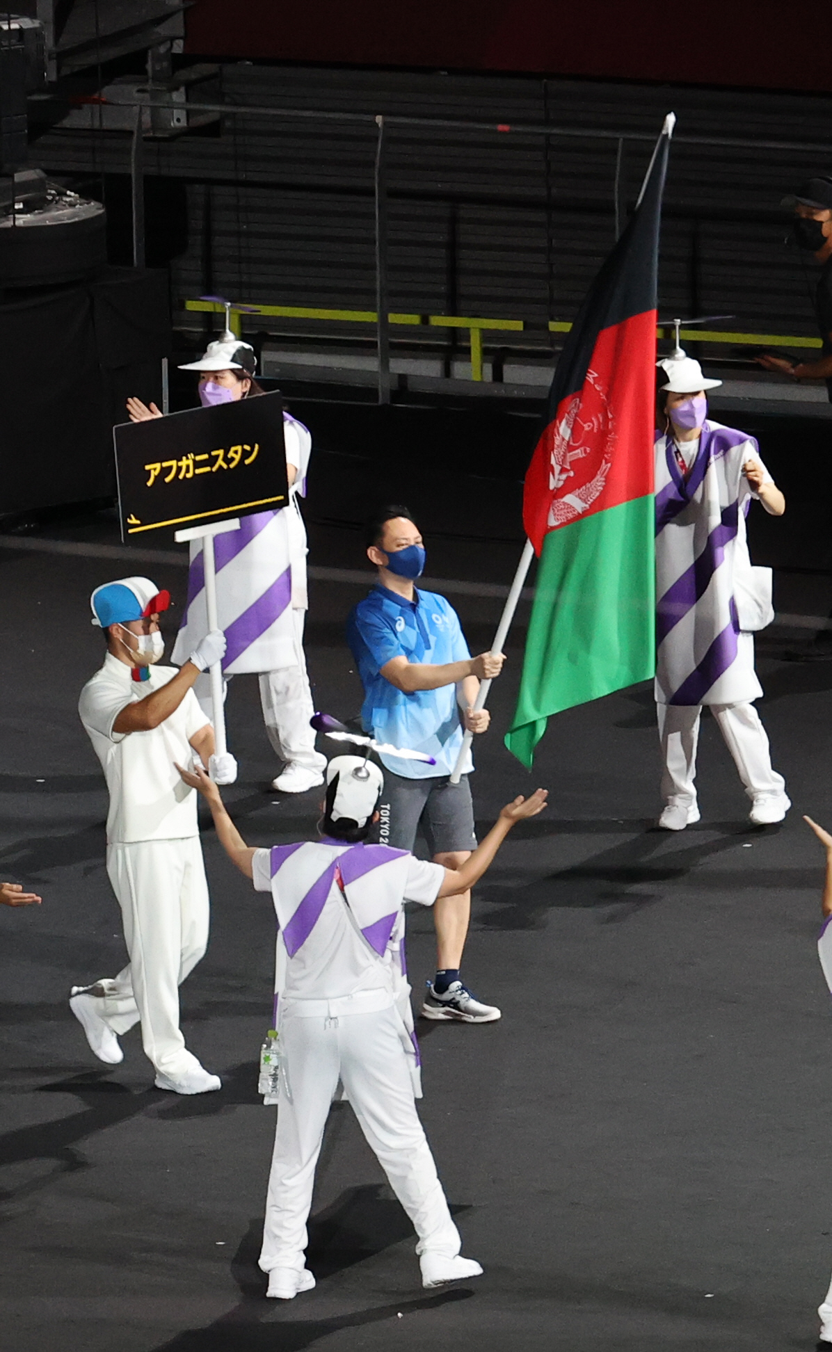 24일 오후 8시 일본 도쿄 신주쿠의 국립경기장(올림픽 스타디움)에서 펼쳐진 패럴림픽 개회식의 선수단 입장 행사에선 아프가니스탄의 국기가 5번째로 입장했다.