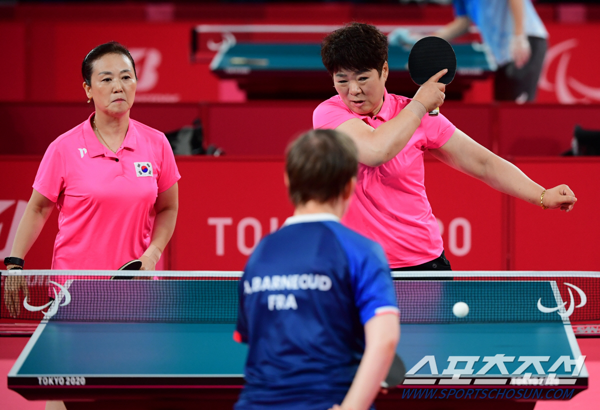 31일 일본 도쿄 메트로폴리탄 체육관에서 열린 2020 도쿄패럴림픽 탁구 여자 단체전(스포츠 등급6-8) 8강전에서 대한민국 김성옥(왼쪽)과 이근우가 경기하고 있다. 도쿄(일본)=사진공동취재단/정재근 기자 cjg@sportschosun.com