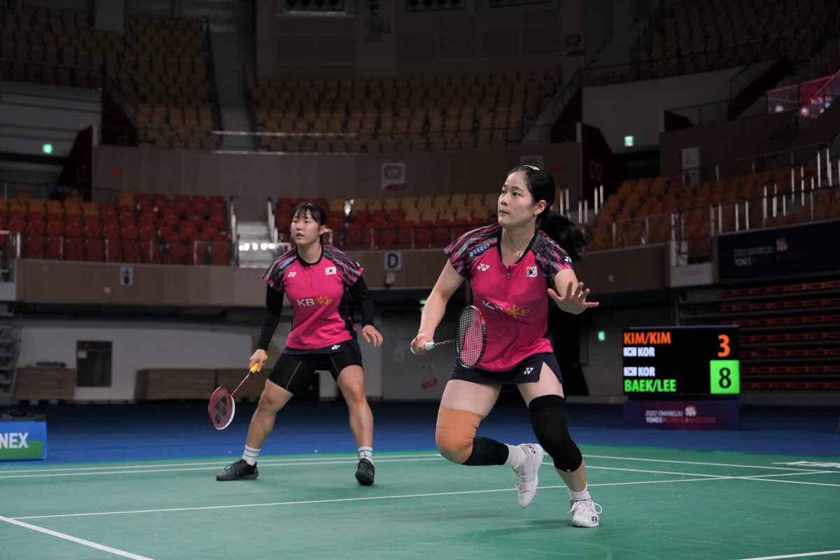 대표팀 은퇴 후 개인자격으로 출전 중인 김기정-김사랑은 지난 코리아오픈 챔피언이자 현역 국가대표 서승재-강민혁 조를 2대0(21-19, 21-13)으로 완파하며 노익장을 과시했다.