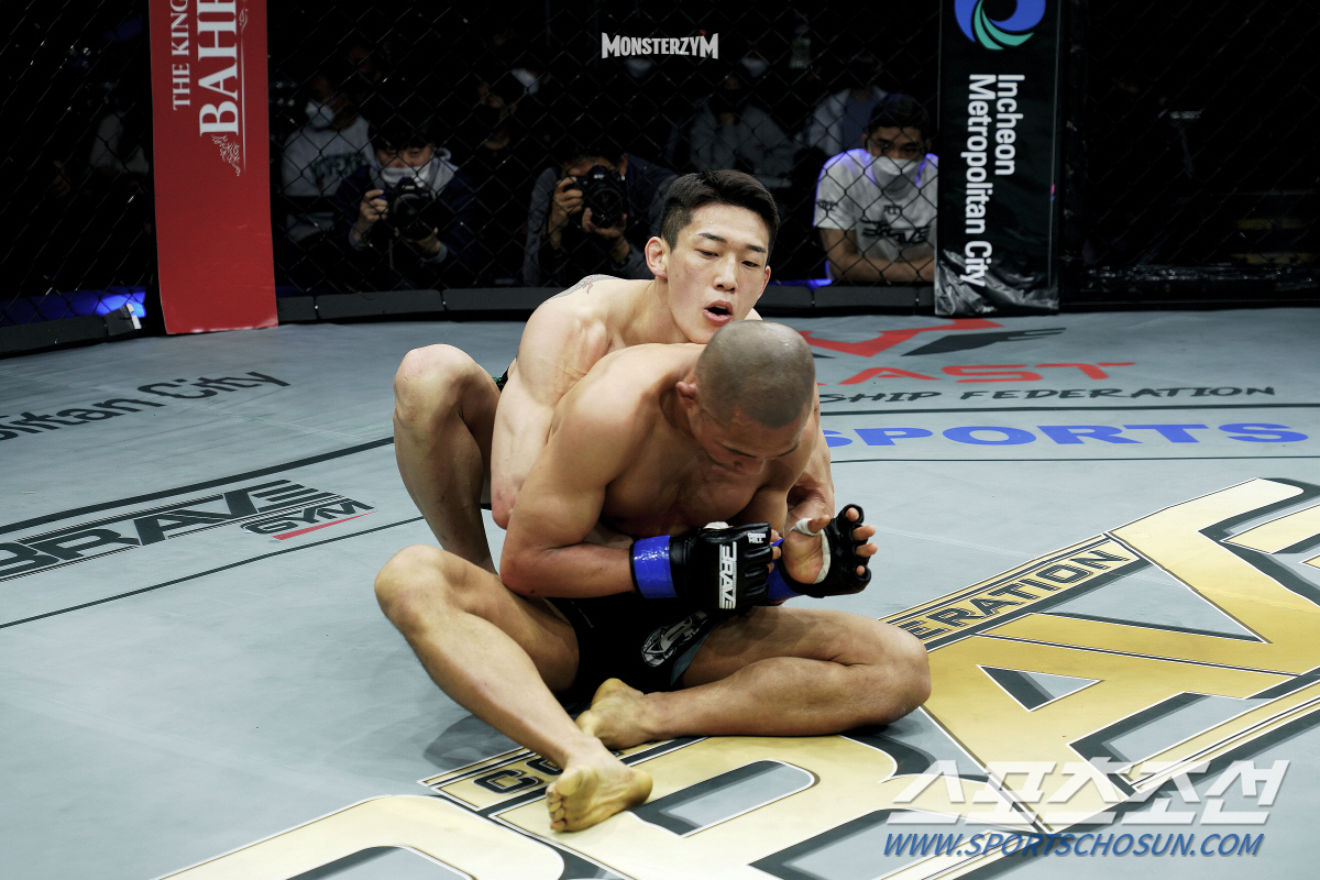 [인천=스포츠조선 권인하 기자]유주상이 바레인 왕자가 창설한 세계적인 격투기 단체 브레이브 CF의 첫 한국 대회의 첫 승자가 됐다. 유주상은 30일 인천 삼산체육관에서 열린 브레이브 CF 58 페더급 경기서 오두석을 심판 전원일치 판정승으로 승리했다.