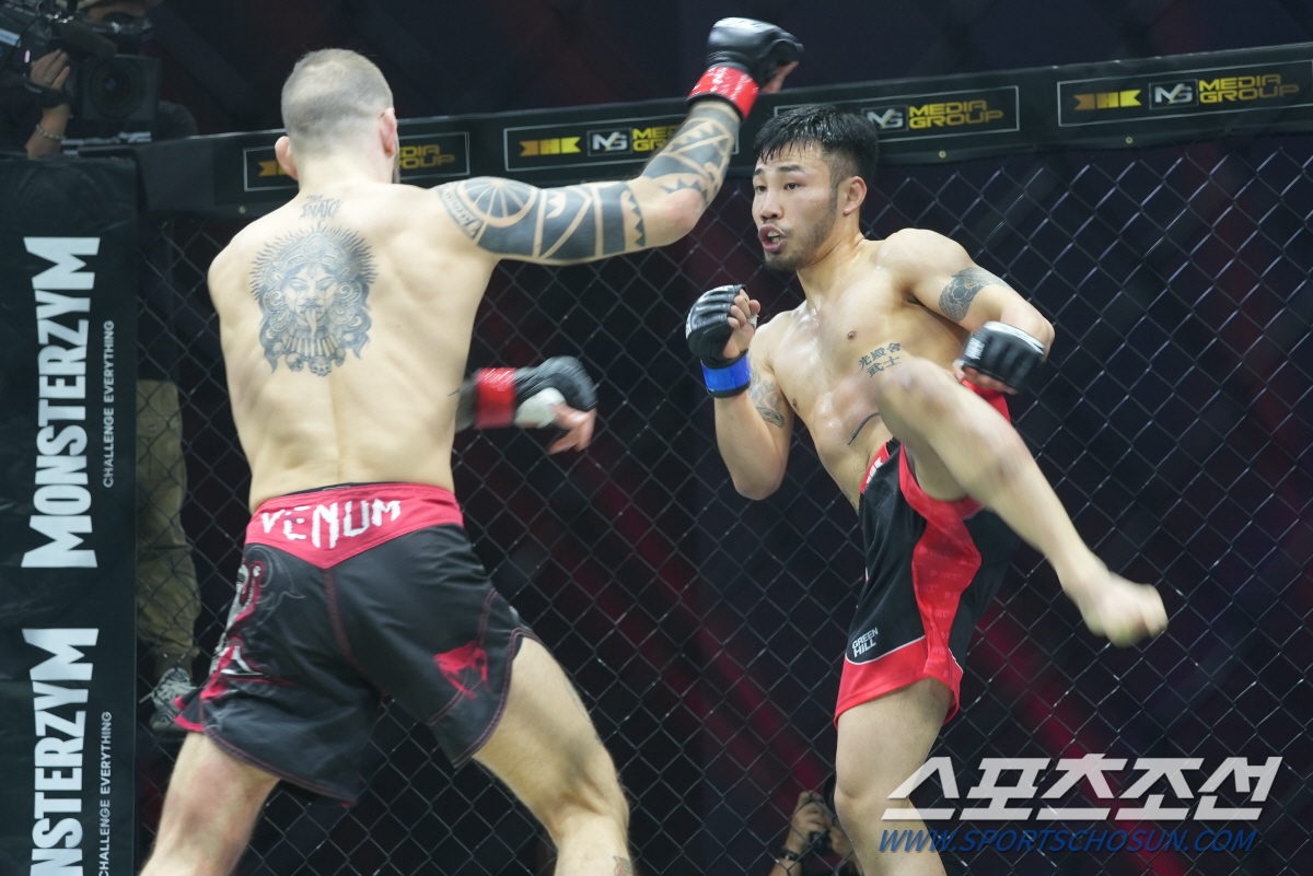 2라운드 초반은 둘 다 킥 공격으로 빈틈을 노렸다.