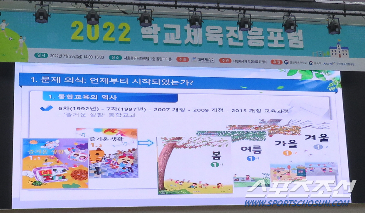 첫 발제자로 나선 이승배 안산 화정초 교사는 '초등 1·2학년 체육교과를 독립 운영해야 한다'는 주제로 아동 비만율 증가의 심각성과 신체 발육발달의 저해, 뇌 자극-발달의 부족, 차단된 운동욕구의 문제를 조목조목 짚어낸 후 초등 1-2학년 '체육, 음악, 미술 통합교과'로 운영해온 '즐거운생활'에서 체육 교과 분리의 필요성을 역설했다. 이 교사는 "학교 운동장에서 초등학교 1-2학년을 볼 수가 없다"면서 "유치원 교육과정에서도 체육은 분리, 독립돼 운영되고 있다. 미국, 캐나다, 독일, 프랑스, 호주, 일본 등 어떤 국가도 체육을 음악, 미술과 통합적으로 가르치는 나라가 없다. 세계적으로 유래가 없는 이상한 교육과정"이라며 혁신의 필요성을 강조했다. "일부 특정단체 극소수자의 이기적인 생각과 체육수업에 대한 부담감 때문에 초등학교 1-2학년 체육교과 분리, 독립문제가 학교현장으로부터 외면받아왔다"면서 "아무리 번거롭고 힘들다 할지라도 외면해선 안될 일이다. 새정부와 어른들의 결단과 용기가 필요하다"고 말했다.