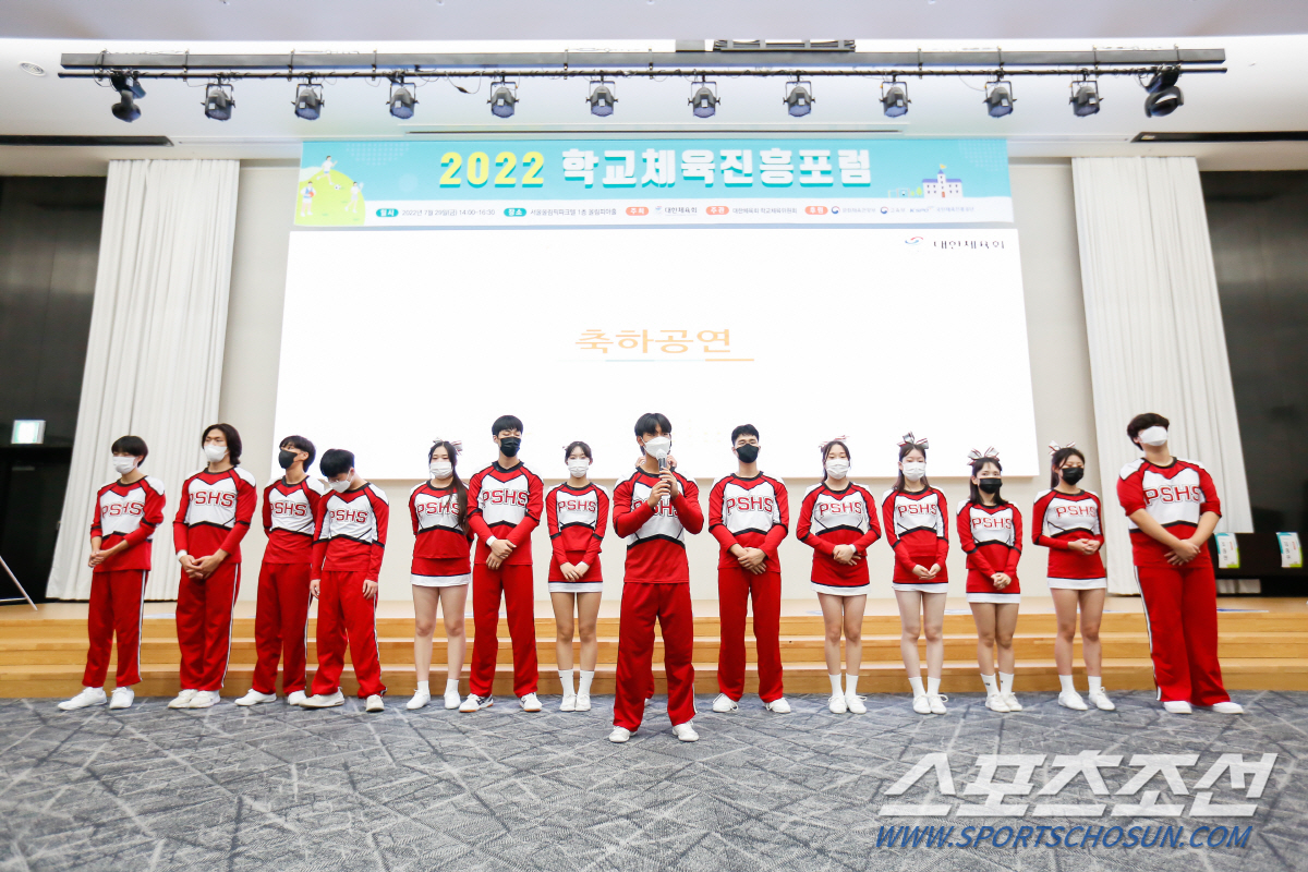 이날 포럼은 경기도 풍산고 치어리딩 스포츠클럽 PSHS의 아찔하고 화려한 공연으로 개막을 알렸다. 공연 후 마이크를 잡은 김성일 풍산고 치어리딩단장은 "저희는 체육하는 날 학교 가는 것이 행복합니다. 학교에서 체육으로 행복한 날이 더 많아졌으면 좋겠습니다"라는 짧지만 진심이 깃든 한마디를 전했다.