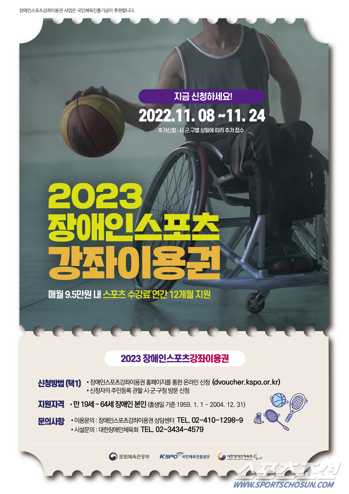 대한민국 장애인들의 건강 습관을 책임질 2023년 '장스강' 신청은 오는 24일까지 진행된다. 장애인스포츠강좌 이용권 홈페이지와 주민등록상 관할 시군구청을 방문해 신청하면 각 자치구에서 대상자를 선정한다. 마감 일주일을 앞둔 17일 현재 신청자가 9000명에 육박했다. 1만4000명 모집을 목표 삼고 있다. '장스강' 1만 명 시대는 이제 꿈이 아닌 현실이다.