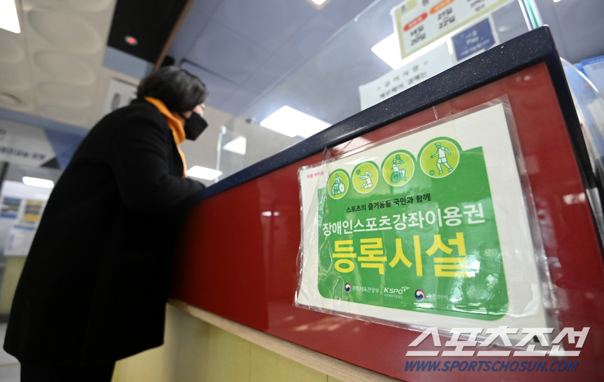 16일 서울 송파구 서울시립 곰두리체육센터는 이른 아침부터 수영, 헬스를 즐기고자 센터를 찾은 장애인들로 북적였다. 휠체어 전용 운동기구가 들어찬 헬스장, 휠체어 입수 경사로를 갖춘 수영장 등 장애인 누구나 장벽 없이 이용할 수 있는 송파 유일의 시설이다. 수영, 헬스, 골프, 배드민턴, 골프 등 다양한 종목 강습을 3만~4만원에 받을 수 있다. 9만5000원의 '바우처'로 2~3종목을 수강할 수 있다.