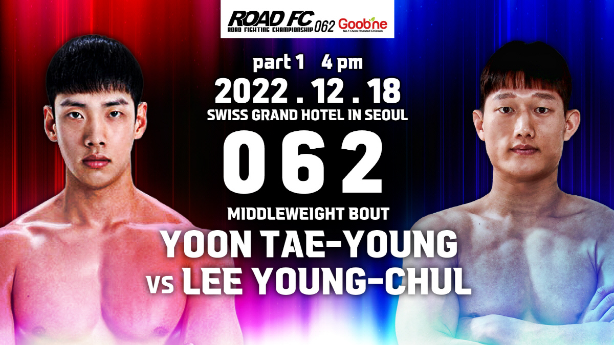 굽네 ROAD FC 062는 1부가 오후 4시, 2부가 오후 6시에 시작된다. 대회는 12월 18일 SPOTV에서 1부부터 전경기 생중계된다.